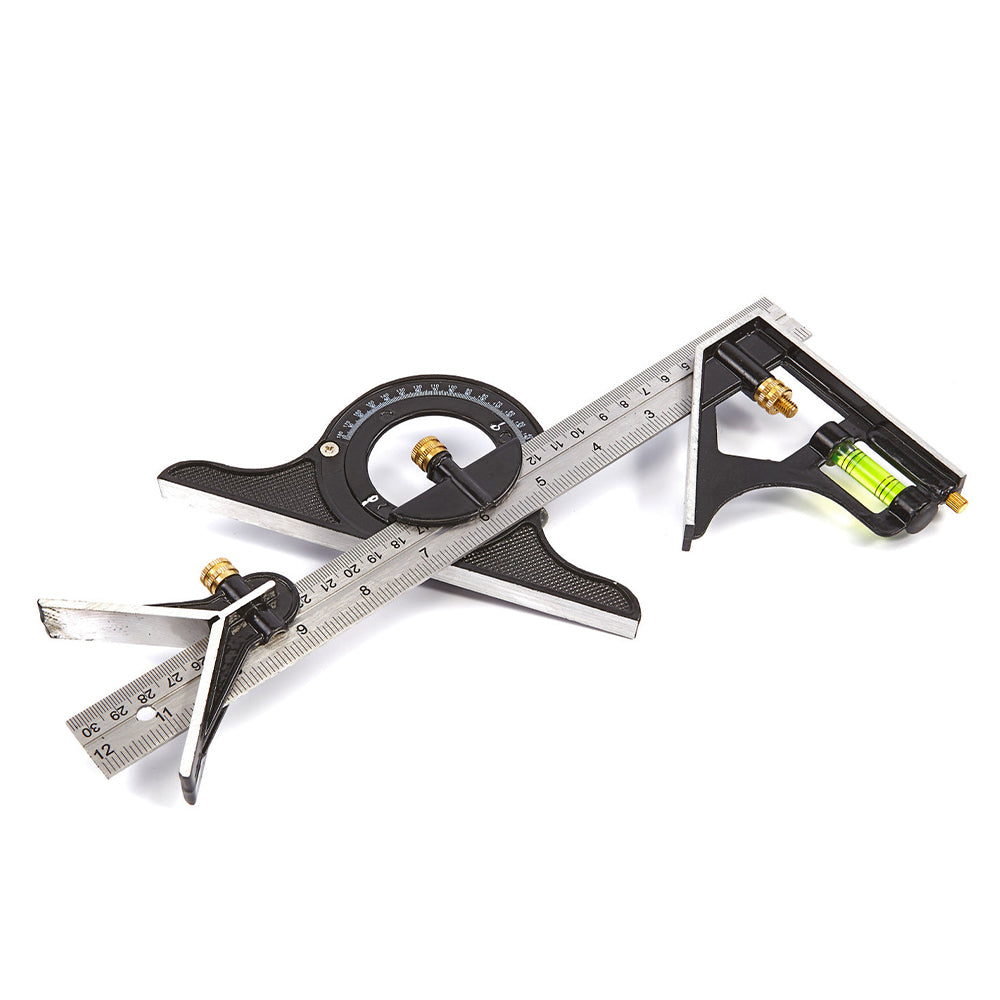 TÁTO SADA NA MERANIE UHLU NASTAVITEĽNÁ 300MM z nehrdzavejúcej ocele s dĺžkou 300 mm, s metrickou a imperiálnou stupnicou.