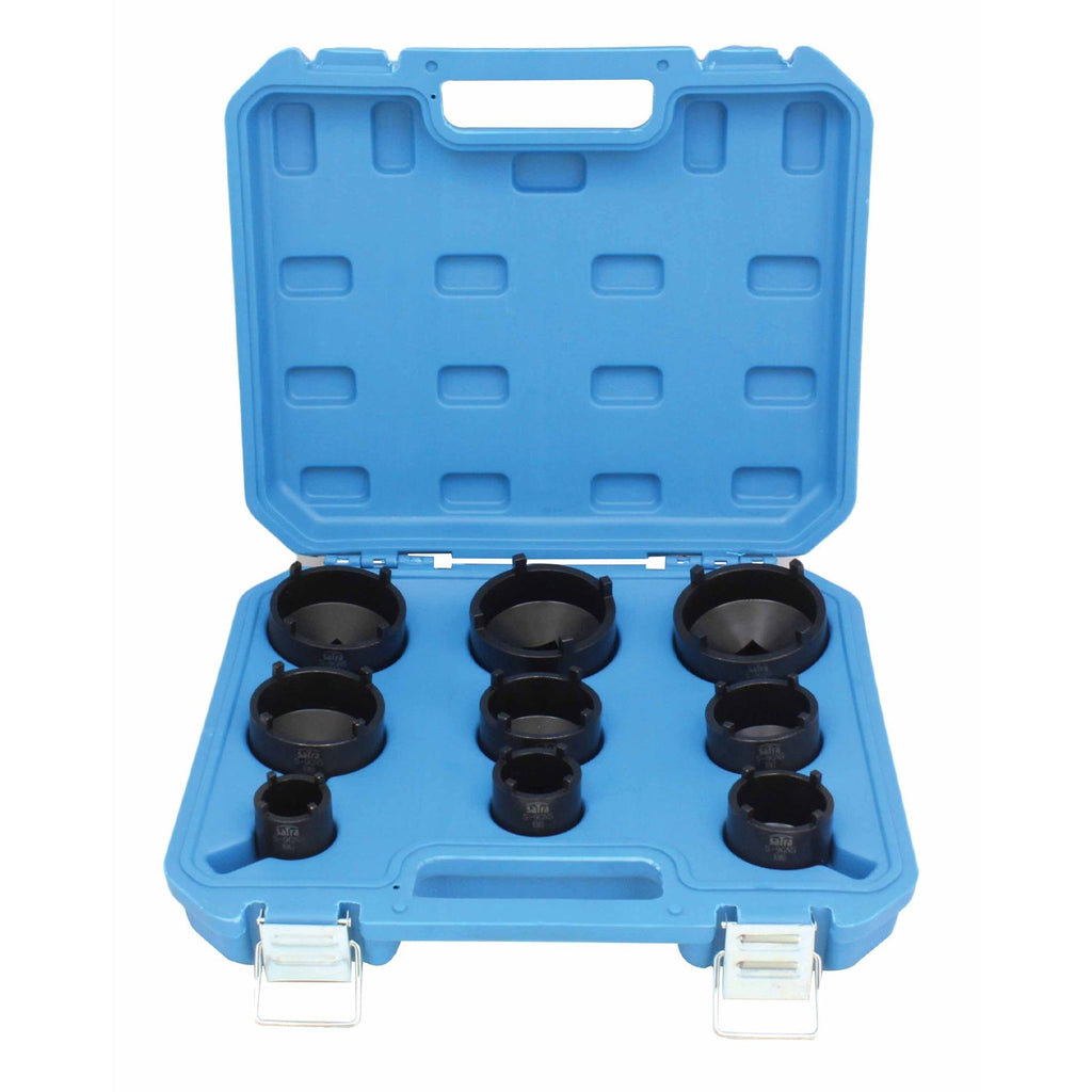 Táto SADA HLAVÍC S 4 PINMI NA ŽLIABKOVÉ MATICE 9 KUSOV je špeciálne navrhnutá tak, aby poskytla maximálny prístup a priľnavosť pri práci so žliabkovými maticami, čo uľahčuje ich efektívne a bezpečné utiahnutie alebo povolenie. Každý kus sady má rôzne rozmery, aby sedel na rôzne veľkosti žliabkových matíc, čím sa zabezpečuje univerzálnosť a použiteľnosť v rôznych aplikáciách.