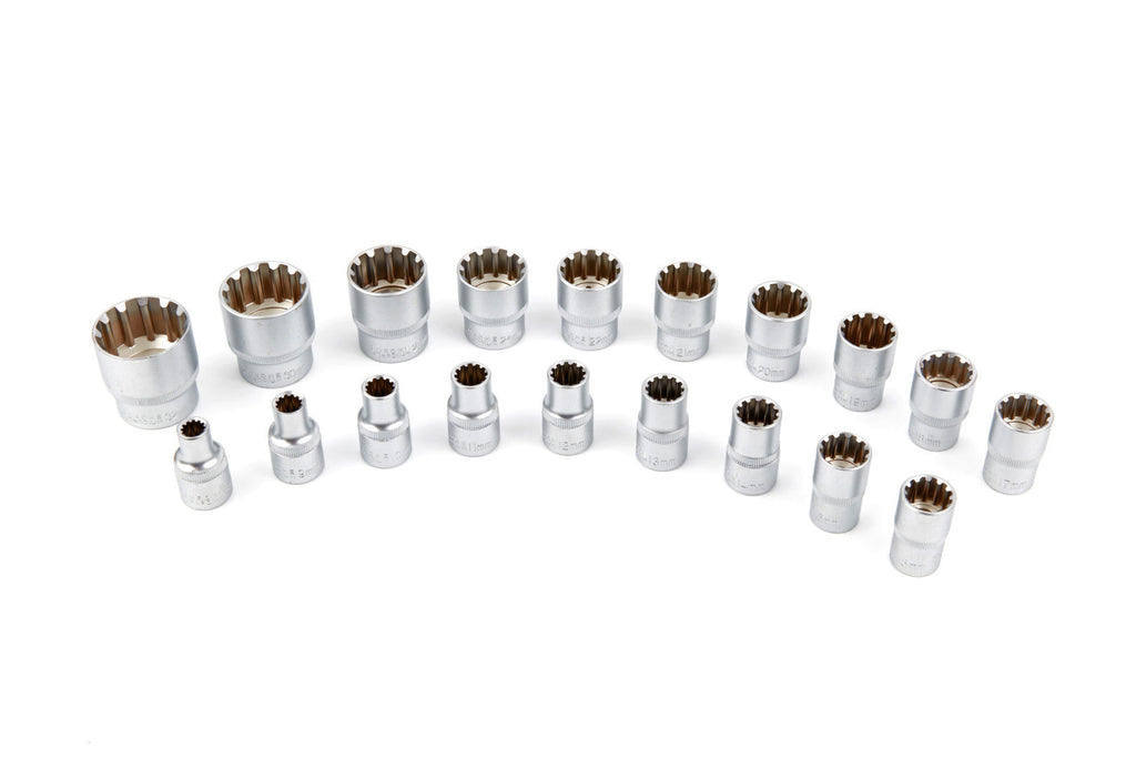 Tento SÚBOR NÁSTRČNÝCH KĽÚČOV VARIO PLUS 1/2 8-32MM HBM je nevyhnutnosťou v každej dielni. Veľkosť nástrčného kľúča je uvedená pod príslušným priehradkou. Takto môžete po použití vložiť nástrčné kľúče späť na správne miesto a rýchlo nájsť požadovanú veľkosť.