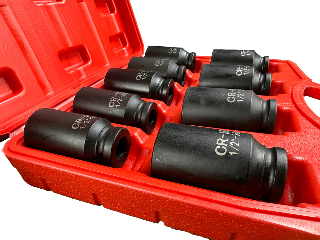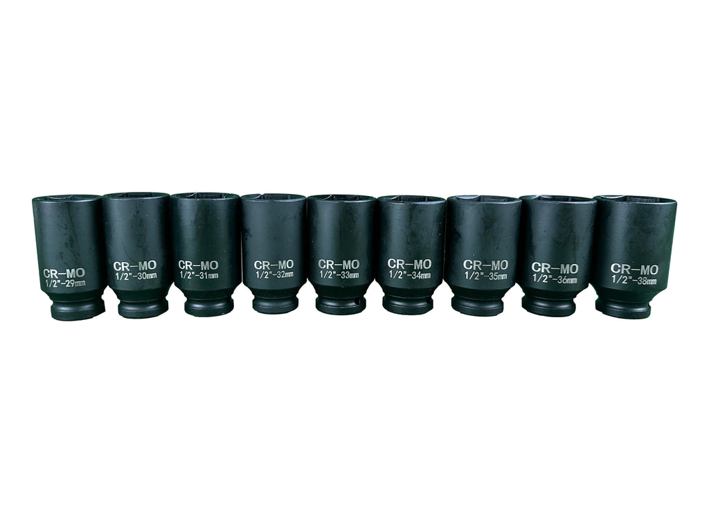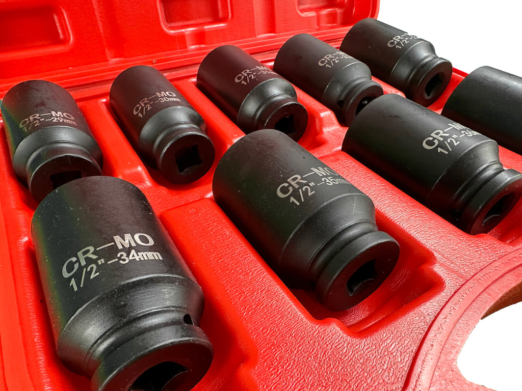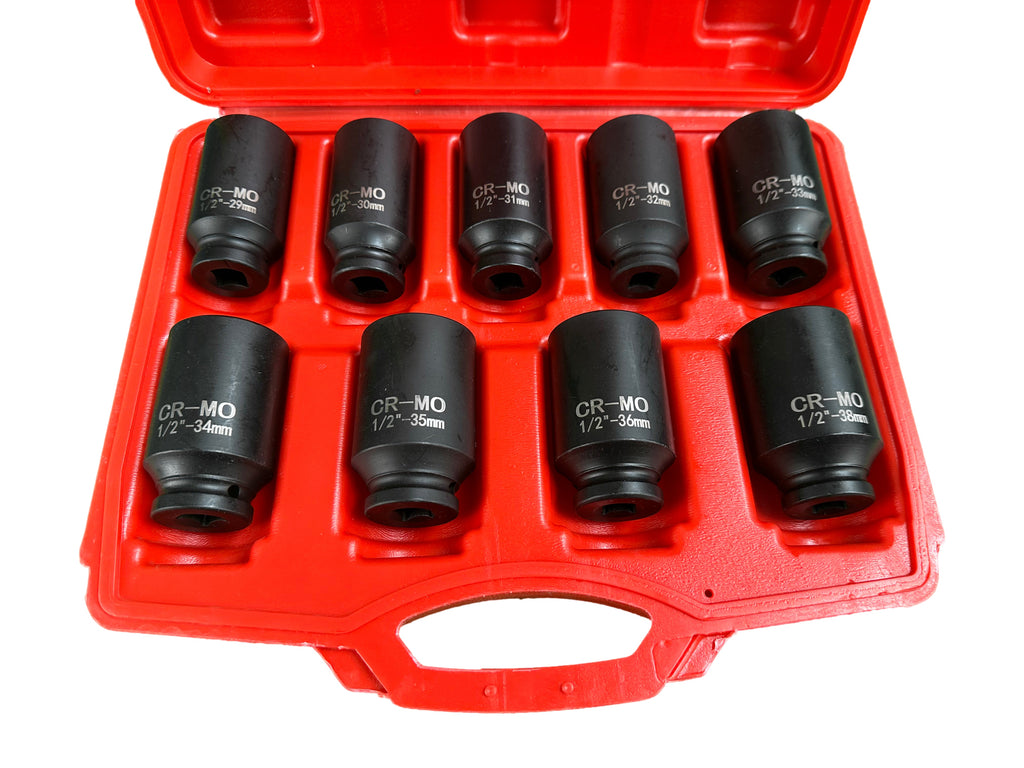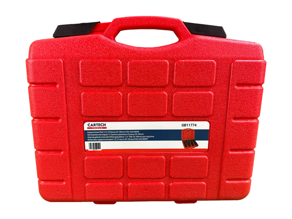TÁTO SÚPRAVA RÁZOVÝCH NÁSTRČNÝCH KĽÚČOV 1/2" PRE POLOOSY 9 KUSOV 29–38MM PSA VAG BMW GEBO TOOLS je vyrobená z vysoko kvalitnej chróm-molybdénovej ocele. Výhody tejto sady spočívajú v odolnosti proti korózii, dvojnásobnej pevnosti v ťahu (v porovnaní s uhlíkovou oceľou), vysokej odolnosti voči deformáciám, prasklinám a teplotám. Veľkosti nástrčných kľúčov sa pohybujú od 29 do 38 mm.