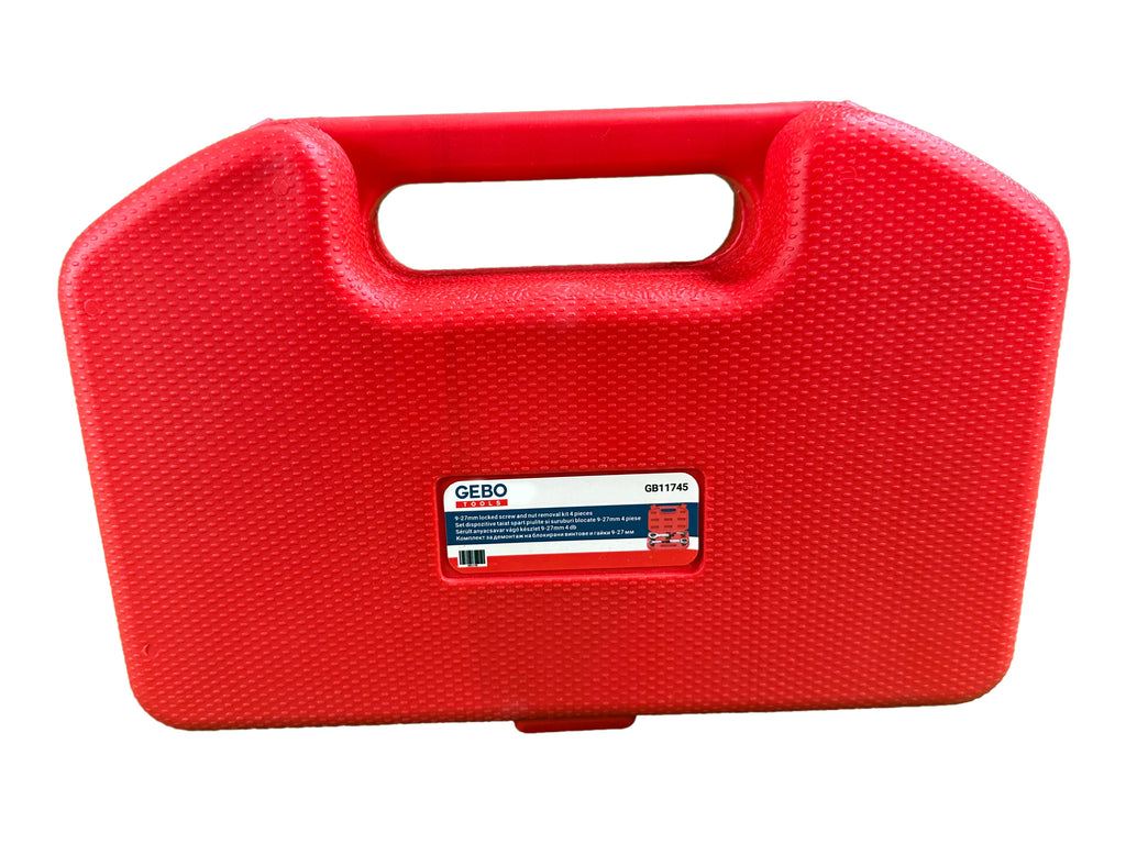 TÁTO SADA NÁSTROJOV NA REZANIE A LÁMANIE ZASEKNUTÝCH MATÍC A SKRUTIEK 9–27MM 4 KUSY GEBO TOOLS sa skladá zo 4 mechanicky ovládaných nástrojov rôznych veľkostí s reznými čepeľami z ocele. Táto sada umožňuje odstránenie alebo prerezanie matíc bez poškodenia závitu skrutky.