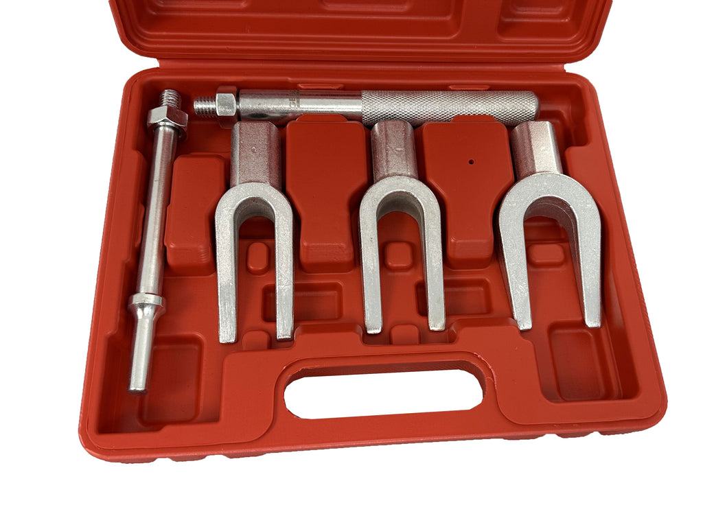 Je ideálna na odstránenie guľových čapov, spojovacích tyčí a pivotov bez poškodenia susedných komponentov. Súprava obsahuje závitovú rukoväť a závitový adaptér kompatibilný s príklepovým kladivom, čo ponúka viacero možností použitia. Hmotnosť súpravy je 2,1 kg.