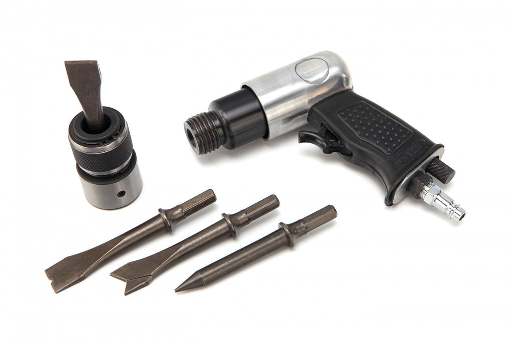 TÁTO SADA PNEUMATICKÉHO KLADIVA A SEKÁČA 4500 RPM HBM obsahuje vysokokvalitné kladivo v hliníkovom puzdre. Sada obsahuje 4 sekáče.