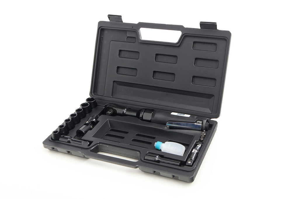 PNEUMATICKÁ RAČŇOVÁ SADA S NADSTAVCAMI 1/2 17 KUSOV HBM sa veľmi často používa v auto a moto priemysle. Má kompaktnú a silnú račňu a pracovný tlak je približne 6 barov.