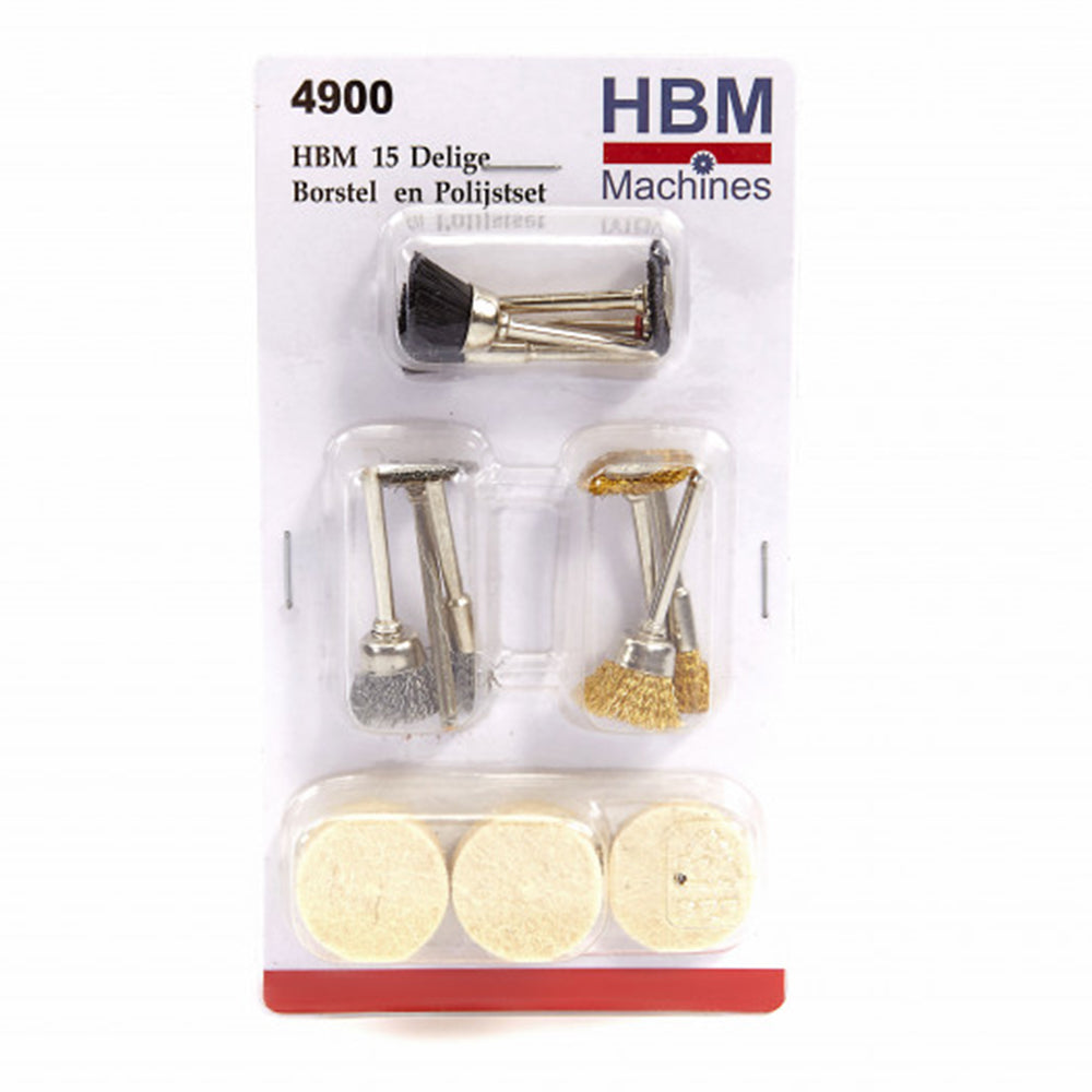 Sada príslušenstva pre mini brúsku – drôtené kefy a plsť 15 kusov hbm