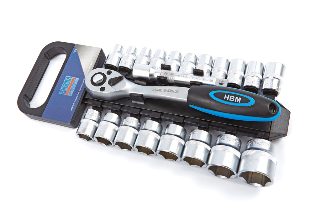 TÁTO SADA RÁČŇOVÉHO KĽÚČA S NÁSTRČNÝMI KLÍČMI 1/2 20 KS je vyrobená z vysoko kvalitnej chróm-vanádovej ocele, s protišmykovou rukoväťou, systémom rýchleho uzamykania a prepínačom na ľavú/pravú stranu.
