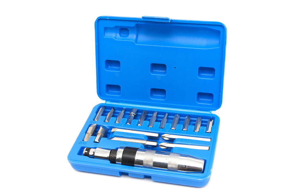 Táto SADA NÁRAZNÝCH SKRUTKOVAČOV S ROTÁCIOU 18 KS môže byť použitá na uvoľnenie alebo utiahnutie skrutiek. Ideálne riešenie pri častom práci so ťažkými alebo zhrdzavenými skrutkami alebo s materiálom, ktorý často obsahuje kovanie. Tento nástroj dobre padne do ruky, takže s ním môžete pracovať dlhší čas.