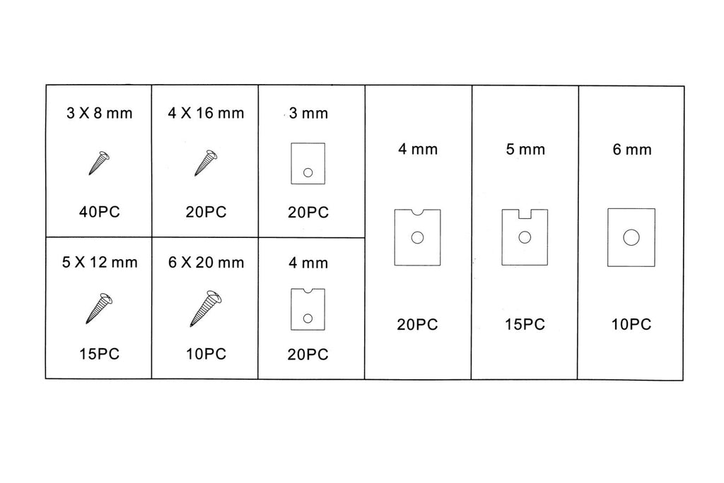 Sada samorezných skrutiek s úchytkami 170 kusov
