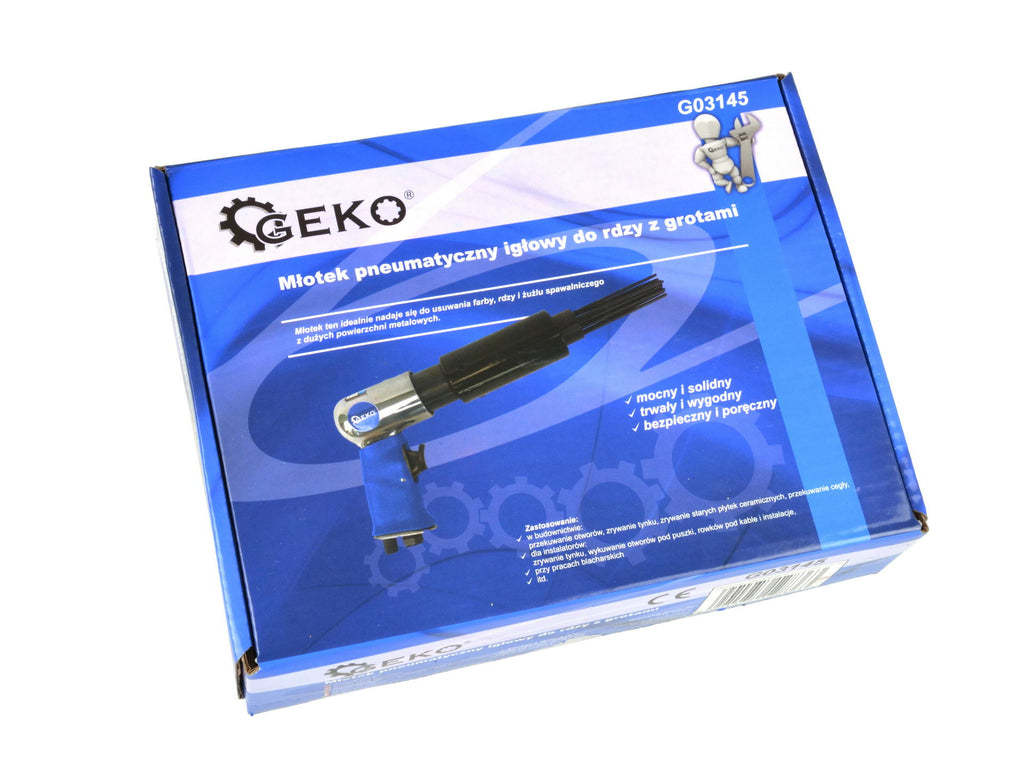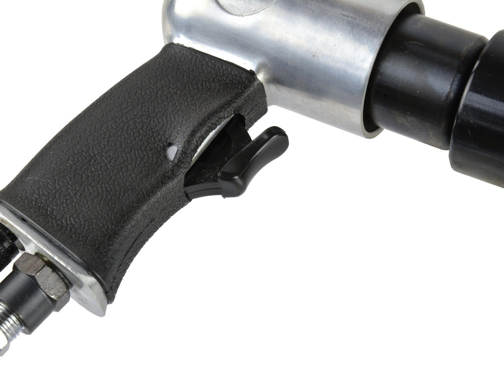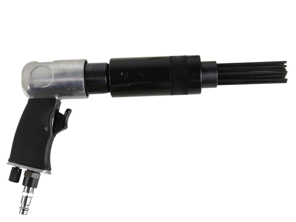 TÁTO SÚPRAVA SEKÁČA A PNEUMATICKÉHO IHLového OČISTOVAČA 2 V 1 má rukoväte umiestnené na zadnom konci náradia. Bežne sa používa na vertikálne operácie. Je určená na odstraňovanie hrdze a čistenie korodovaných povrchov. Čistí a odstraňuje trosku.