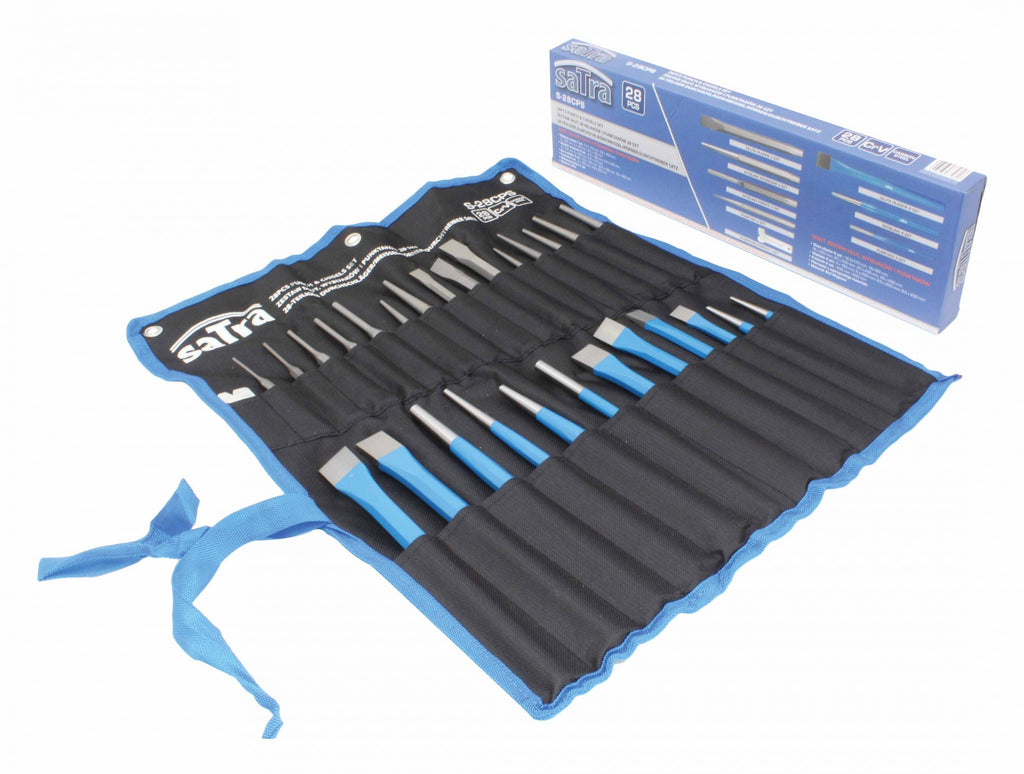 TÁTO SADA DLÁT A VYRAŽAČOV 28 KUSOV obsahuje prvky vyrobené z Cr-V ocele a uhlíkovej ocele, ktoré sú ideálne na opracovanie dreva, kovu alebo iných materiálov.