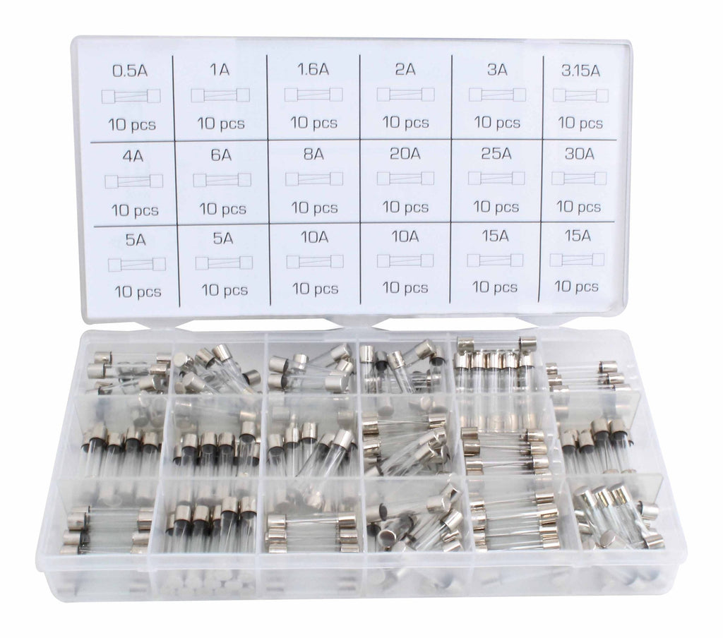 Sada sklenených poistiek 6x30 mm 0.5a-30a 180 kusov