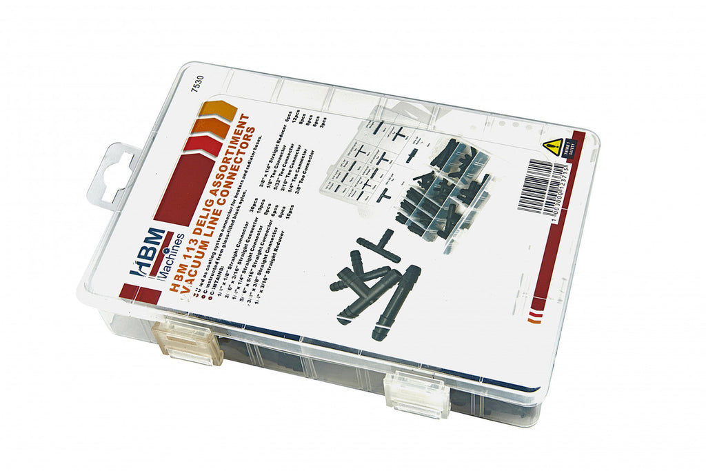 TÁTO SÚPRAVA VÁKUOVÝCH SPOJOK 113 KS je určená pre plastové a gumové hadice. Vhodná na použitie v systémoch ostrekovačov čelného skla, vákuových hadiciach a iných podobných aplikáciách.