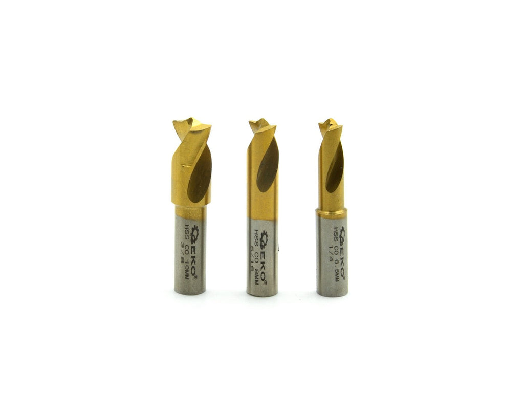 TÁTO SADA VRTÁKOV NA ZVÁRACIE BODY 3 KUSY obsahuje prvky s rozmermi 6.5, 8 a 10 mm. Sú vyrobené z HSS ocele s povlakom a 5% obsahom kobaltu.