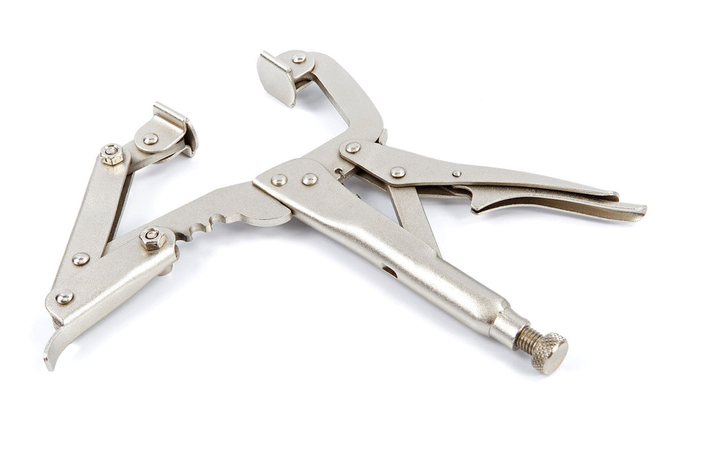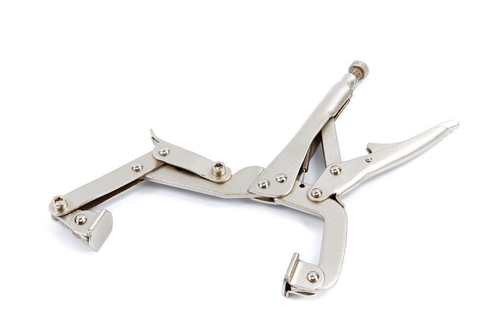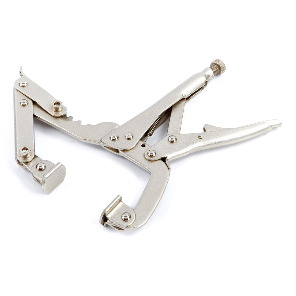 Tieto SAMOZVERNÉ KLIEŠTE NA KAROSÁRSKE PRÁCE sú vybavené otočným gombíkom na konci jednej rukoväte, ktorý umožňuje jednoduché nastavenie polohy klieští.