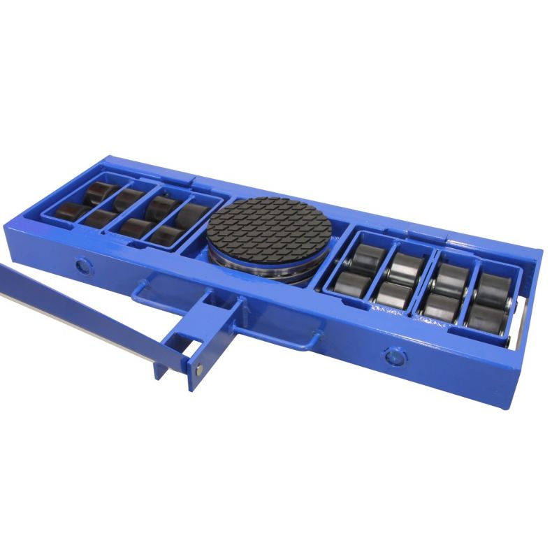 PODVOZOK S ROLKAMI A VODIČOM NA PREPRAVU ŤAŽKÝCH BREMEN 24T je vybavený silnými PU kolesami, ktoré poskytujú odolnosť na takmer všetkých povrchoch a majú dlhú životnosť vďaka zloženiu materiálu.