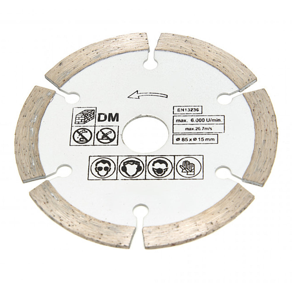 Priemer hriadeľa je 15 mm a celkový priemer kotúča je 85 mm. Čepeľ kotúča je segmentovaná a ostrie je orientované dovnútra, preto je jednoduchšie rezať tvrdé materiály.