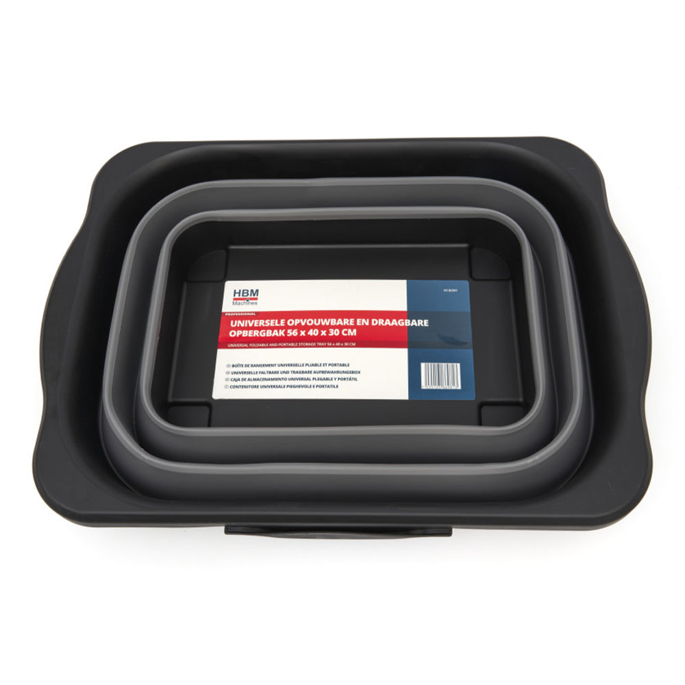 TÁTO SKLADACIA ÚLOŽNÁ BOXDÓZA HBM má univerzálne využitie, pretože v nej možno skladovať náradie, súčiastky, hračky alebo iné domáce predmety. Jej skladacia funkcia umožňuje jednoduché uloženie, keď sa nepoužíva. Box je vyrobený z flexibilného plastu a je podopretý štyrmi pevnými nohami.
