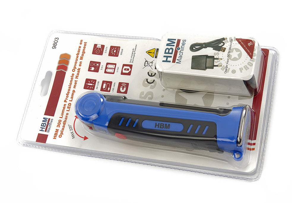 TÁTO SKLADACIA A NABÍJATEĽNÁ LED LAMPA S MAGNETOM A HÁČIKOM 300 LUMEN HBM ponúka jasné biele svetlo s farebnou teplotou 4900 Kelvinov. Lampu je možné otáčať o 220º, takže ju môžete presne nasmerovať. Batéria produktu je vstavaná, zvyčajne vydrží až 3 hodiny a je vybavená USB káblom a adaptérom. Okrem toho má magnet, ktorý pevne fixuje lampu vo vertikálnej alebo horizontálnej polohe na akejkoľvek oceľovej ploche.