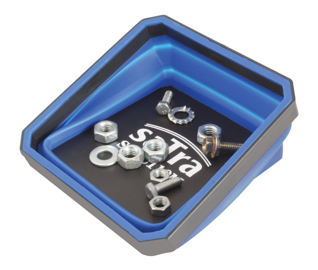 Jedinečný skladací dizajn uľahčuje uskladnenie, vďaka čomu sa nádoba zmestí napríklad do spodnej zásuvky vozíka na náradie. Magnety zabraňujú vypadnutiu kovových predmetov z nádoby.