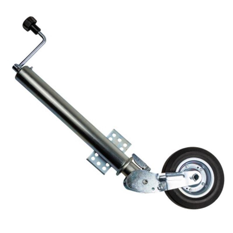 TOTO PEVNÉ SKLÁPACIE OPORNÉ KOLESO PRE PRÍVES ponúka pohodlné a efektívne riešenie na stabilizáciu a podopretie prívesov počas zastavenia alebo parkovania, čím zabezpečuje ľahkú a bezpečnú manipuláciu.