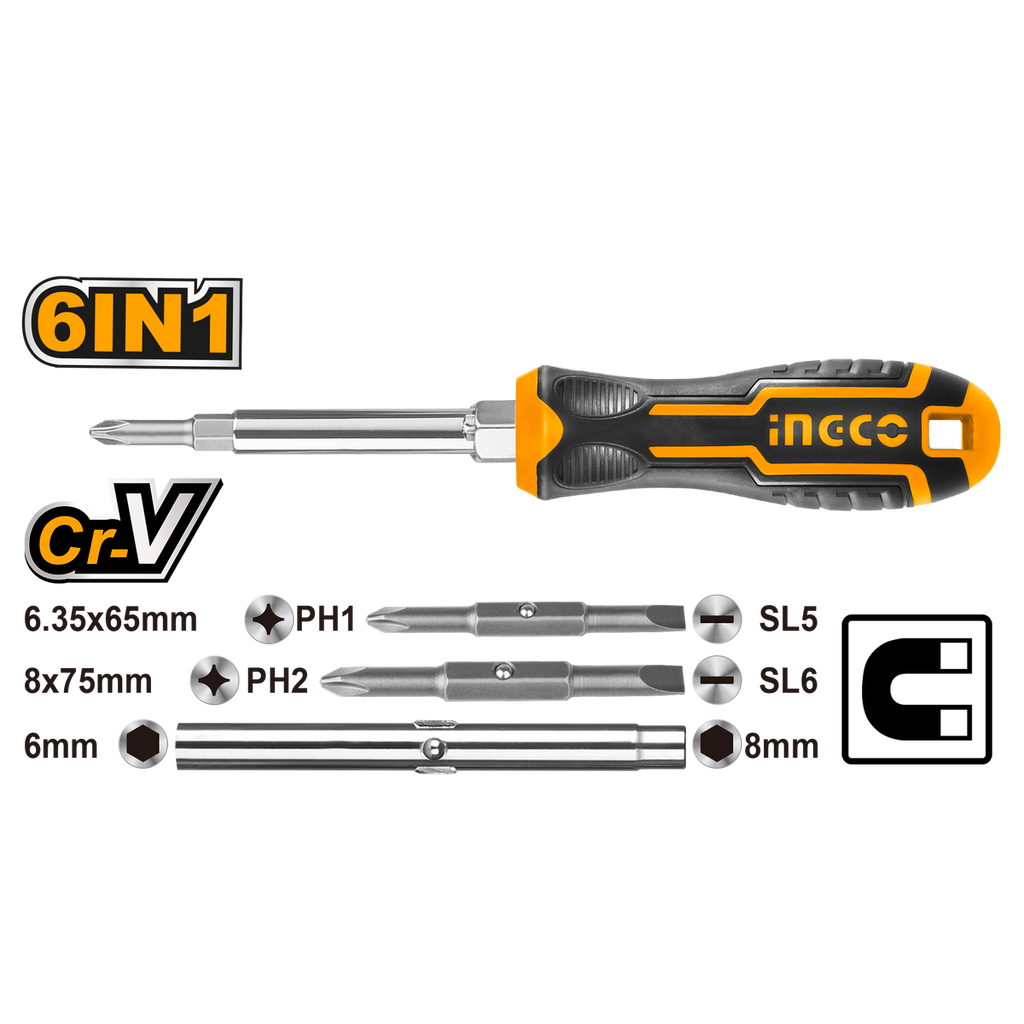 TENTO SKRUTKOVAČ 6 V 1 INGCO je vybavený dvojmateriálovou rukoväťou s ergonomickým dizajnom, ktorý zaisťuje pohodlie pri používaní.