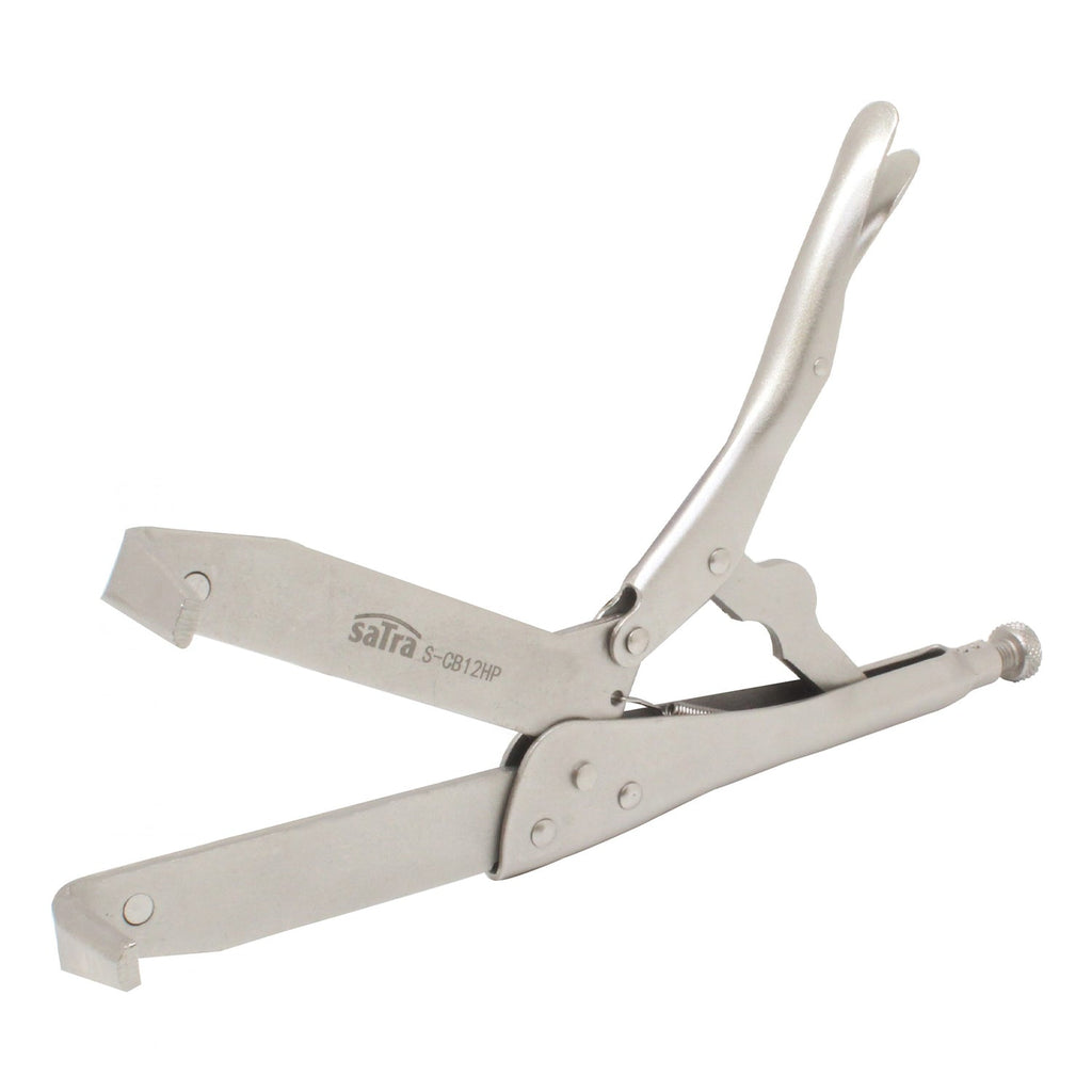 TENTO ŠPECIÁLNY KLIEŠŤ NA UCHYTENIE SETRVAČNÍKA SPOJKY PRE MOTOCYKLE je potrebný na demontáž a montáž náboja spojky a koša spojky. Nastaviteľné čeľuste majú dĺžku až 125 mm. Kolíky s priemerom 8 mm umiestnené za čeľusťami môžu byť použité na zablokovanie zotrvačníka, ozubených kolies alebo prevodov.