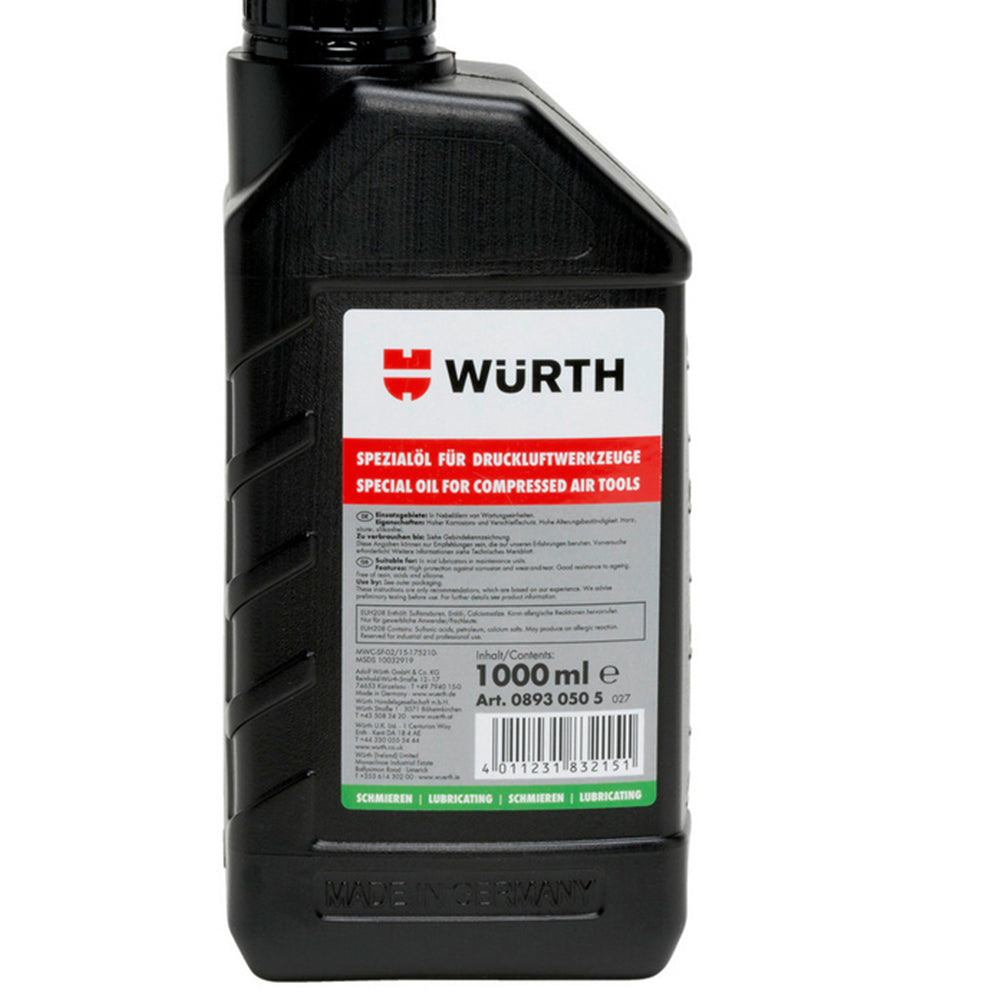 TENTO ŠPECIÁLNY OLEJ NA PNEUMATICKÉ NÁRADIE 1L WURTH poskytuje antikoróznu a protioderovú ochranu pre pneumatické náradie. Možno ho používať aj pri nízkych teplotách.