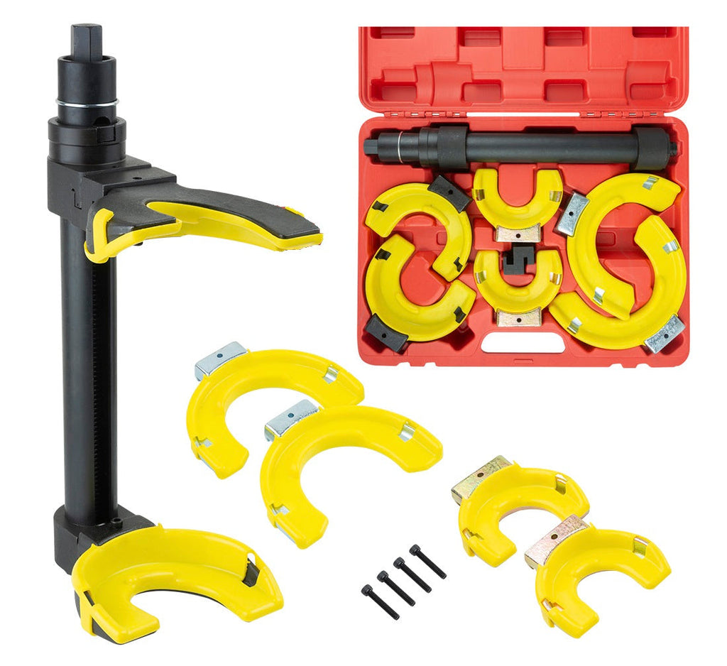 Tento SŤAHOVÁK NA PRUŽINY MCPHERSON 80-265 MM sa používa na montáž alebo demontáž zavesenia kolies. Sada obsahuje 3 sady vymeniteľných čeľustí, takže ju možno použiť takmer na akýkoľvek typ pružín, a to ako na prednej, tak aj na zadnej náprave.