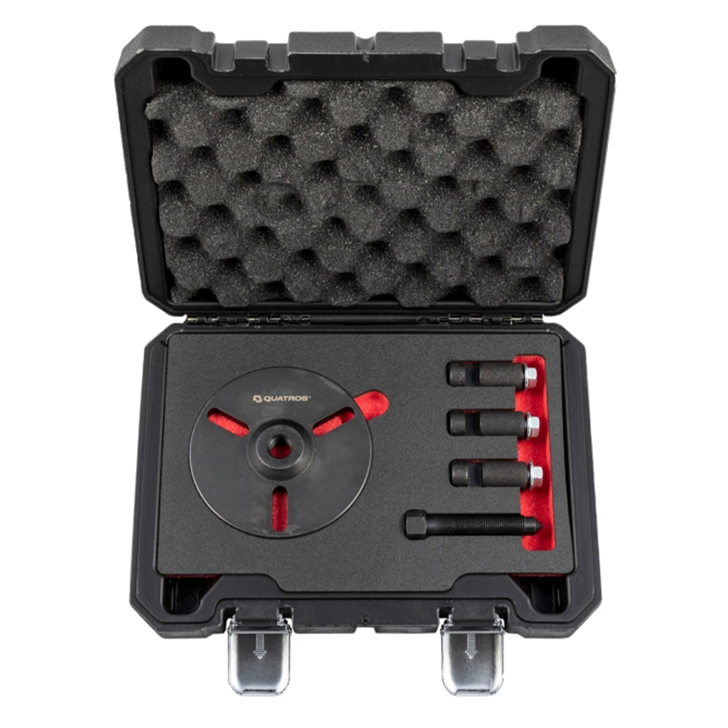 Súprava sťahováka na remenicu vačkového hriadeľa 70–100 mm obsahuje 5 dielov. Materiál, z ktorého sú časti vyrobené, je kov.