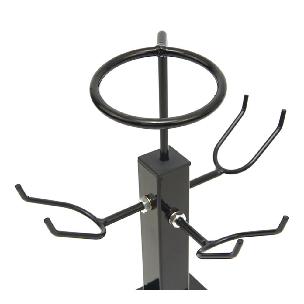 STOJAN NA STRIEKACIE PIŠTOLE HBM môže udržať až 3 striekacie pištole. Oceľové háky majú šírku 60 mm, čo zaručuje stabilné zavesenie pre väčšinu striekacích pištolí. Stojan má dĺžku 26.5 cm, šírku 19.5 cm a výšku 36.5 cm.