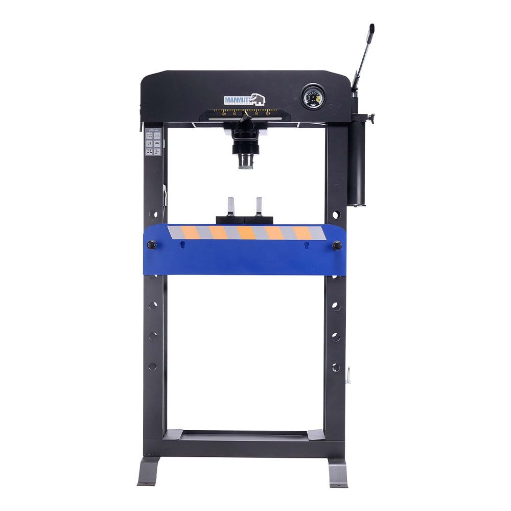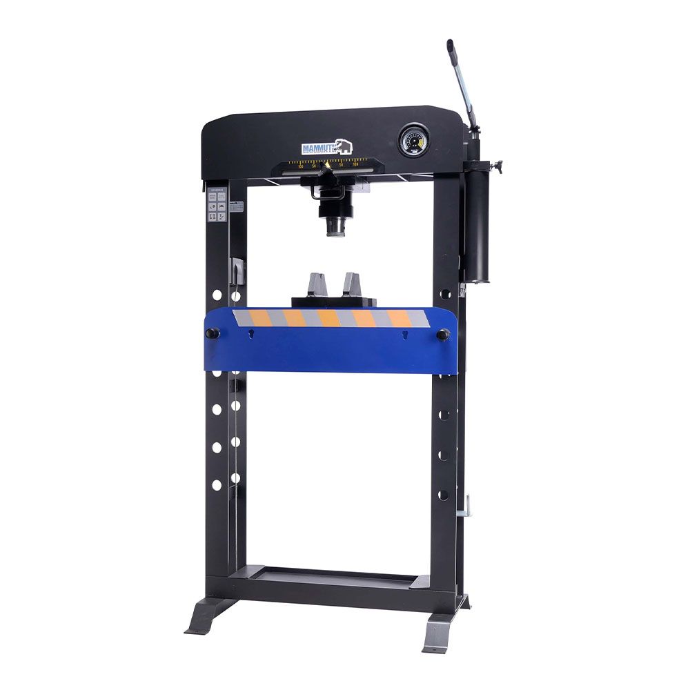 STACIONÁRNY HYDRAULICKÝ LIS 50T MAMMUTH je vhodný na montáž ložísk, lisovanie hriadeľov a skrutiek, ohýbanie rúr a ďalšie lisovacie práce, kde je potrebná veľká sila. Lis má pevný, kompletne zváraný rám. Tlak v kilogramoch je možné jasne odčítať na integrovanom manometri.