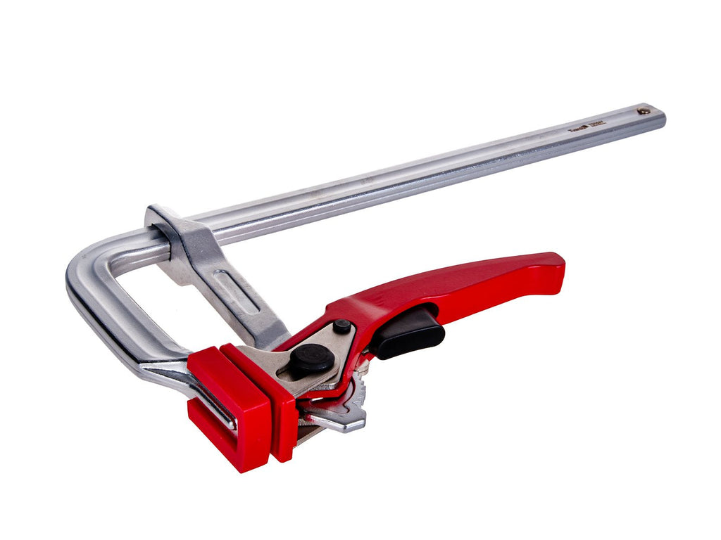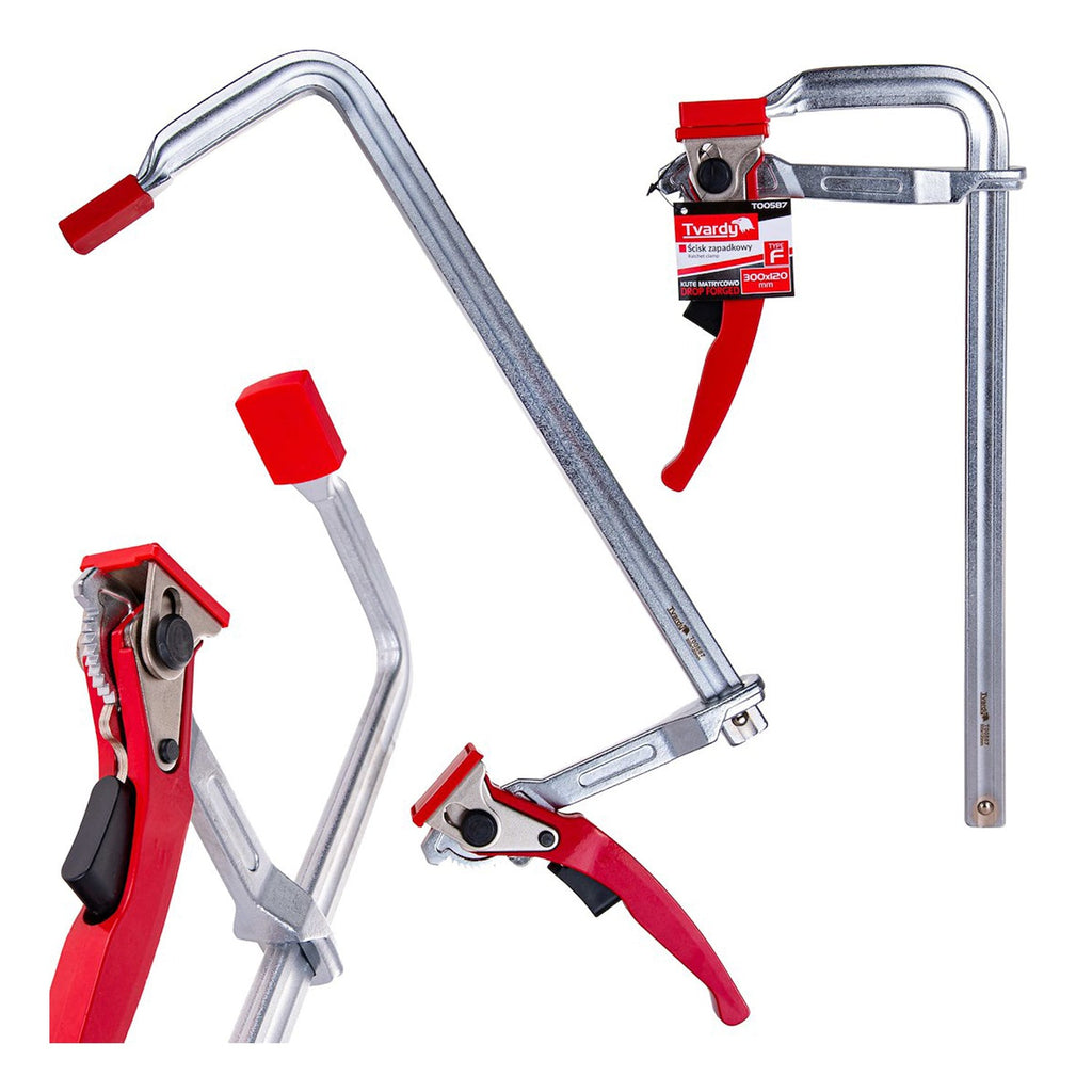 STOLÁRSKA SVORKA TYPU F S RÁČŇOU 300X120MM poskytuje upínaciu silu až 500 kg, čím zaisťuje pevné a stabilné uchytenie obrábaných materiálov. Plastové krytky zabraňujú poškodeniu povrchov materiálov, vďaka čomu je svorka vhodná aj na jemné drevené prvky, nábytok alebo MDF dosky.