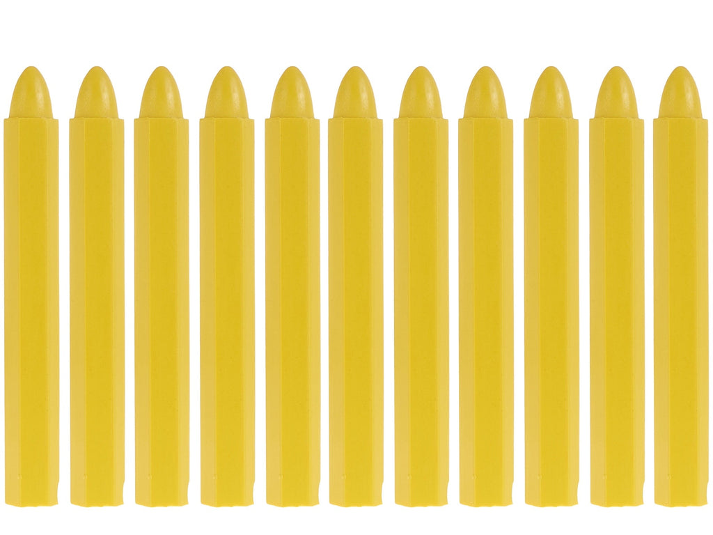SADA 10 ŽLTÝCH KRIED NA OZNAČOVANIE PNEUMATÍK 12X110MM zaisťuje vysokú viditeľnosť na pneumatikách. Sú vodeodolné. Každá krieda má rozmery 12x110mm. Sada obsahuje 10 kusov kriedy.