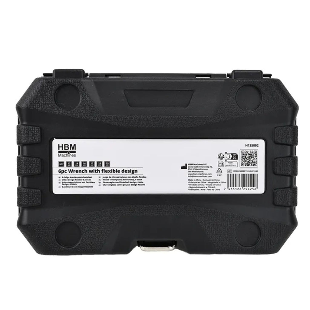 SADA 6 NÁSTRČNÝCH KĽÚČOV 3/8 S KĹBOM NA POTRUBIA 12-19MM HBM obsahuje prvky vyrobené z chróm-vanádiovej ocele a je navrhnutá s otvorenou korbovou hlavou, ktorá umožňuje uťahovanie alebo povoľovanie matíc a skrutiek na ťažko prístupných miestach, kde bežné kľúče nemožno použiť. Majú pripojenie 3/8 palca a rozmery 12, 14, 16, 17, 18 a 19 mm.