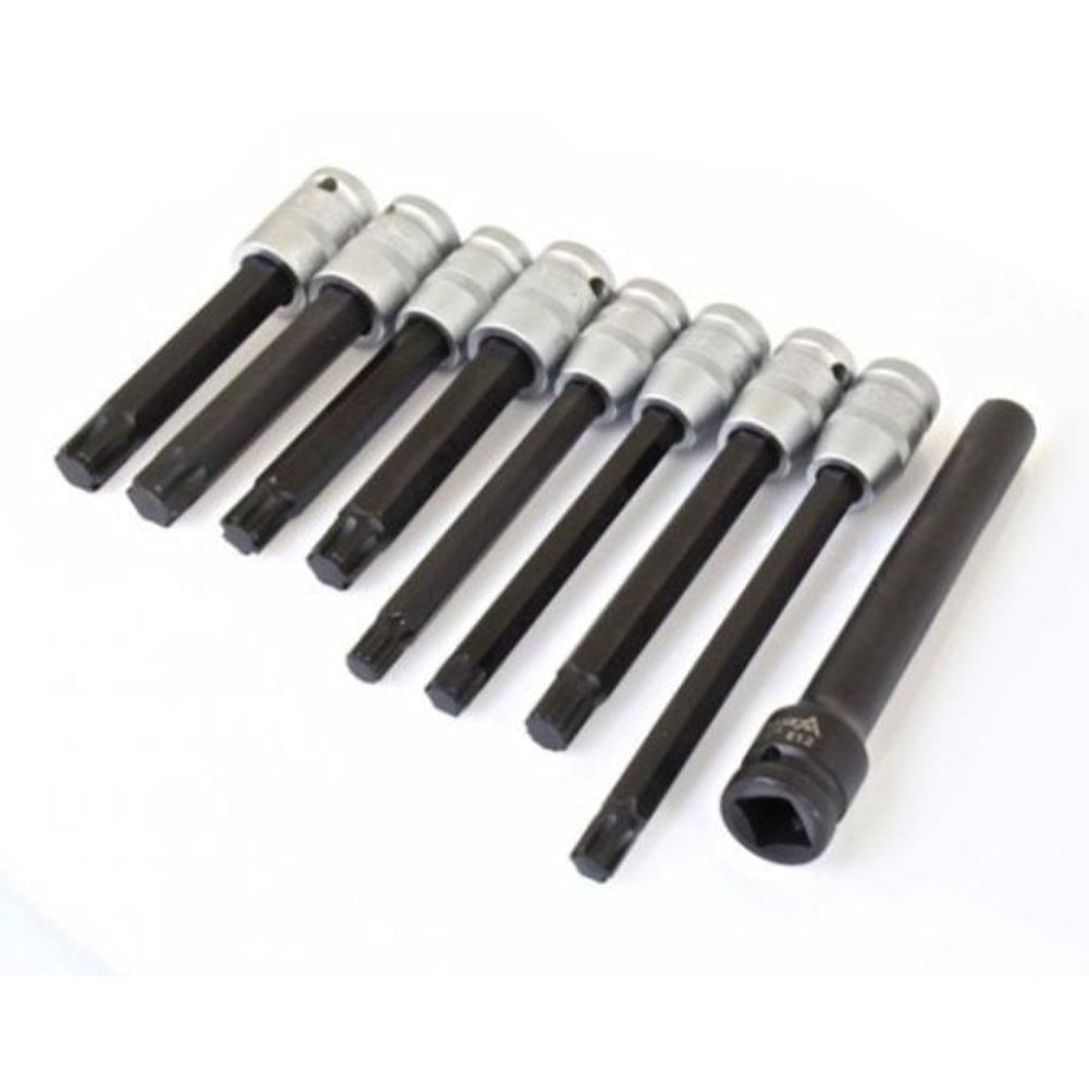 Tento set bitov na valce 1/2, 9 ks je určený pre ½ valcovú hlavu, pozostáva z 9 dielov vyrobených z Cr-V, s najpoužívanejšími rozmermi.