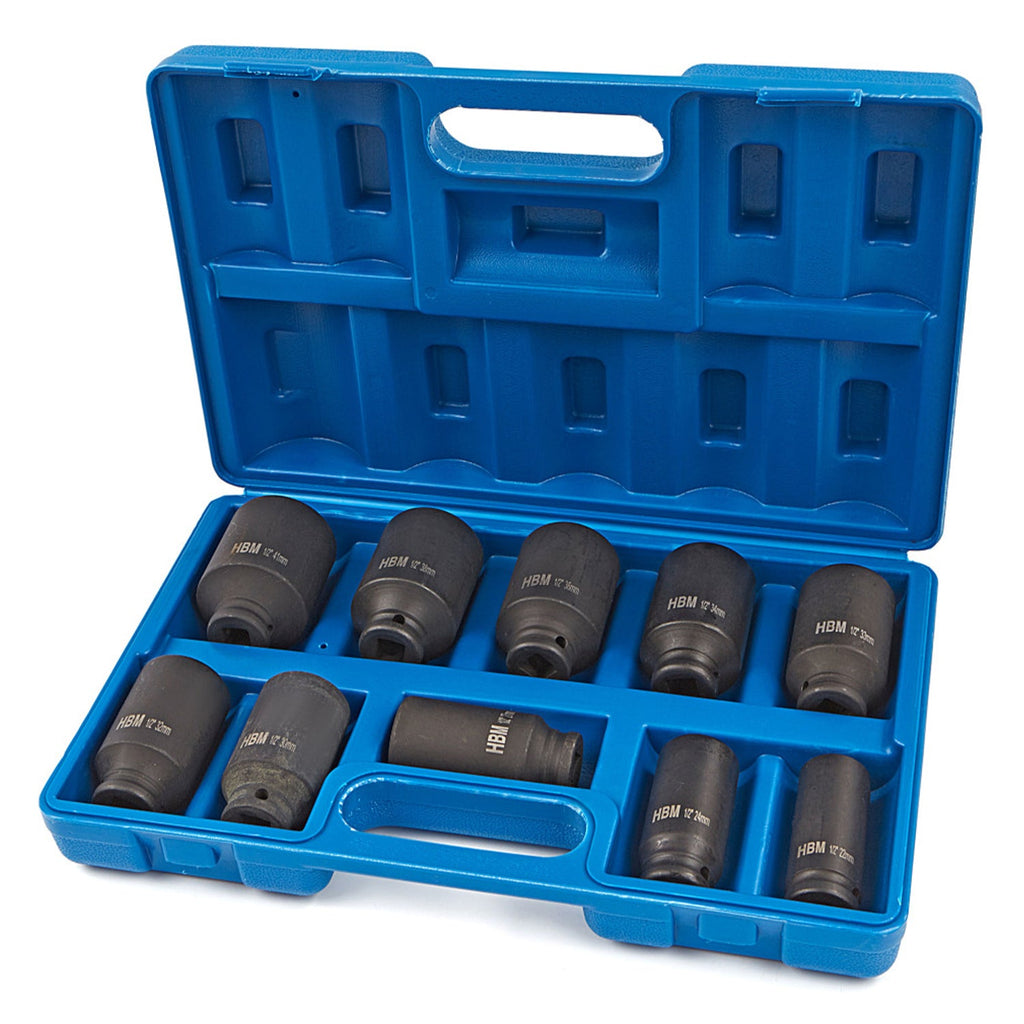 SADA DLHÝCH NÁSTRČNÝCH KLÍČOV NA ÚDEROVÉ NÁRADIE 1/2 22-41 MM 10 KS HBM sa používa s úderovými náradiami. Kľúče sú z kovanej ocele a sú pokryté fosfátom pre ochranu proti korózii.