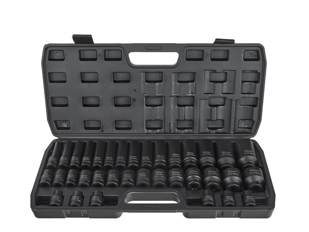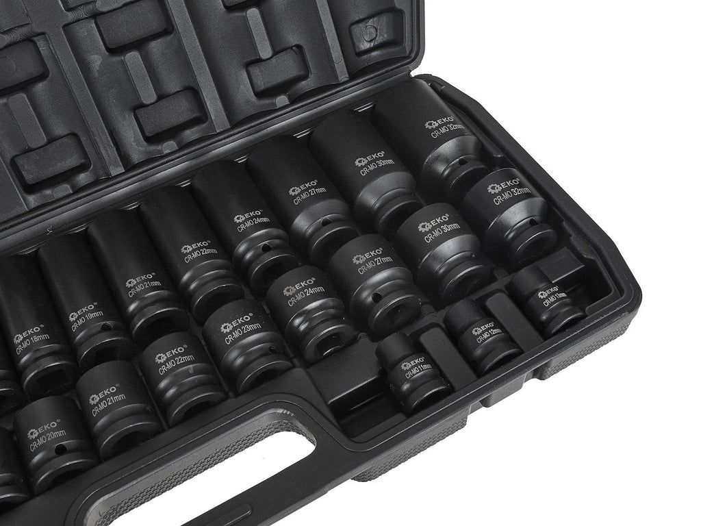 TÁTO SADA KRÁTKYCH A DLHÝCH RÁZOVÝCH NÁSTRČNÝCH HLÁV 1/2 8-32MM 35 KUSOV je určená na použitie s rázovými a račňovými kľúčmi, vhodná pre autoservisné práce, mechaniku a montážne aplikácie, kde je potrebná vysoká odolnosť voči zaťaženiu. Súprava je vyrobená z chróm-molybdénovej ocele (CR-MO).