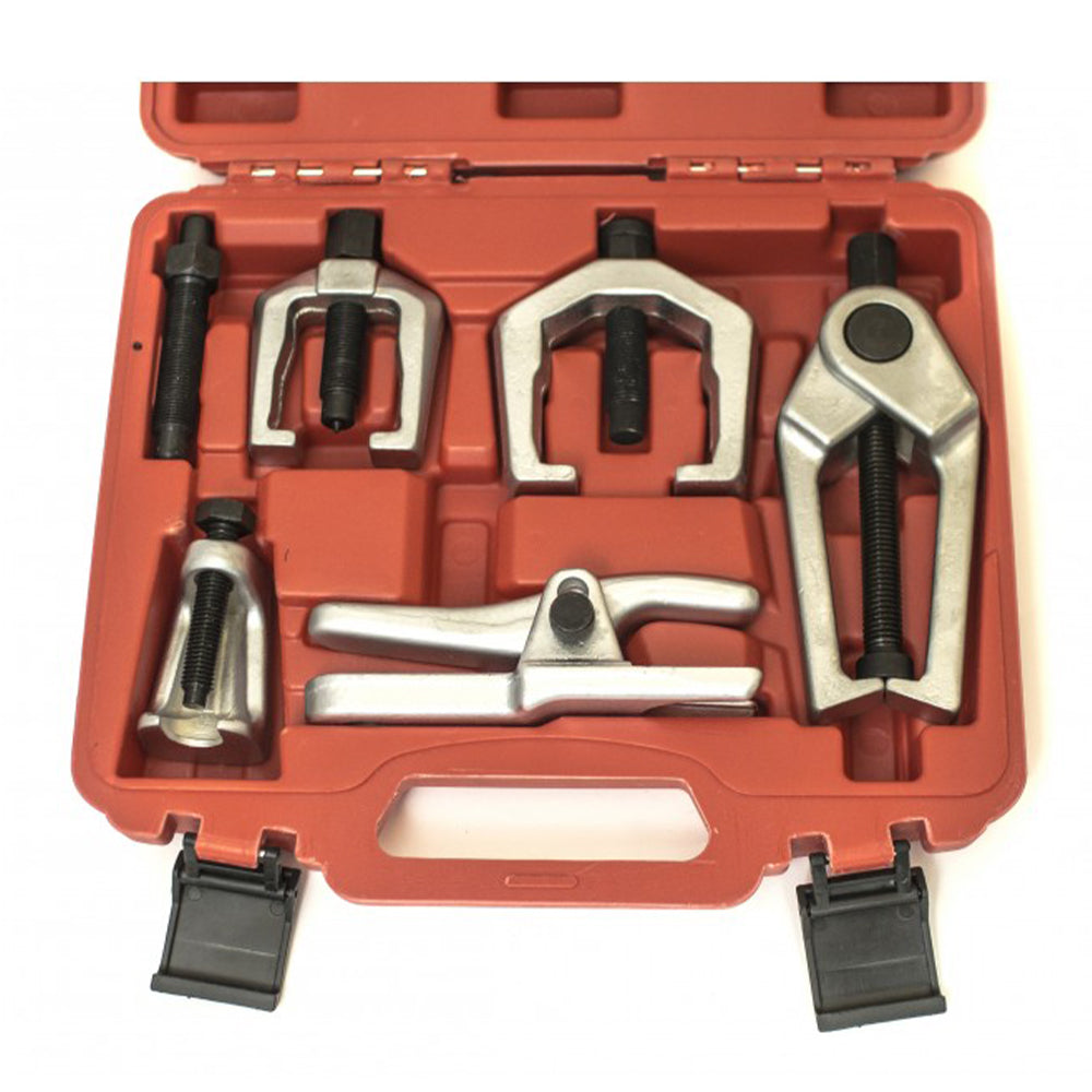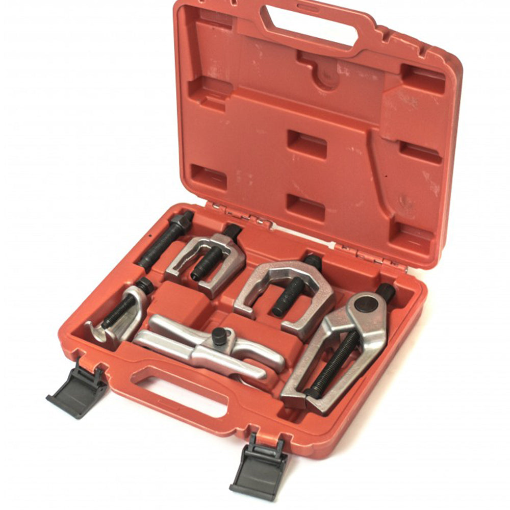 SADA LISOV A SŤAHOVÁKOV NA ČAPY, GUĽOVÉ KĹBY A KONCOVKY ŤAHIEL je vyrobená z kovaného ocele pre vysokú odolnosť. Použitie tohto lisu zabraňuje poškodeniu ramena nápravy.