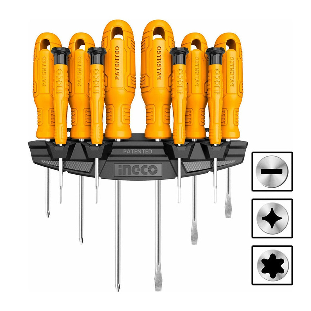 TÁTO SADA MECHANICKÝCH SKRUTKOVAČOV SO STOJANOM 10 KUSOV INGCO je vyrobená z vysokokvalitných materiálov a je praktická a ľahko použiteľná. Súčasťou sady je stojan, v ktorom môžu byť skrutkovače uložené a usporiadané.