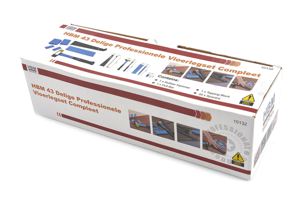 TÁTO SADA NA MONTÁŽ PODLAHY PARKIET HBM je vhodná pre laminátové/podlahy z tvrdého dreva s hrúbkou 7-15 mm (0,28-0,59 "). Ak poklepete na dve dosky, vložte prítlačný blok medzi dosky. Na odstránenie medzery medzi doskami použite kladivo na blok. Na odstránenie medzery na dlhej hrane dosky použite ťahaciu tyč.