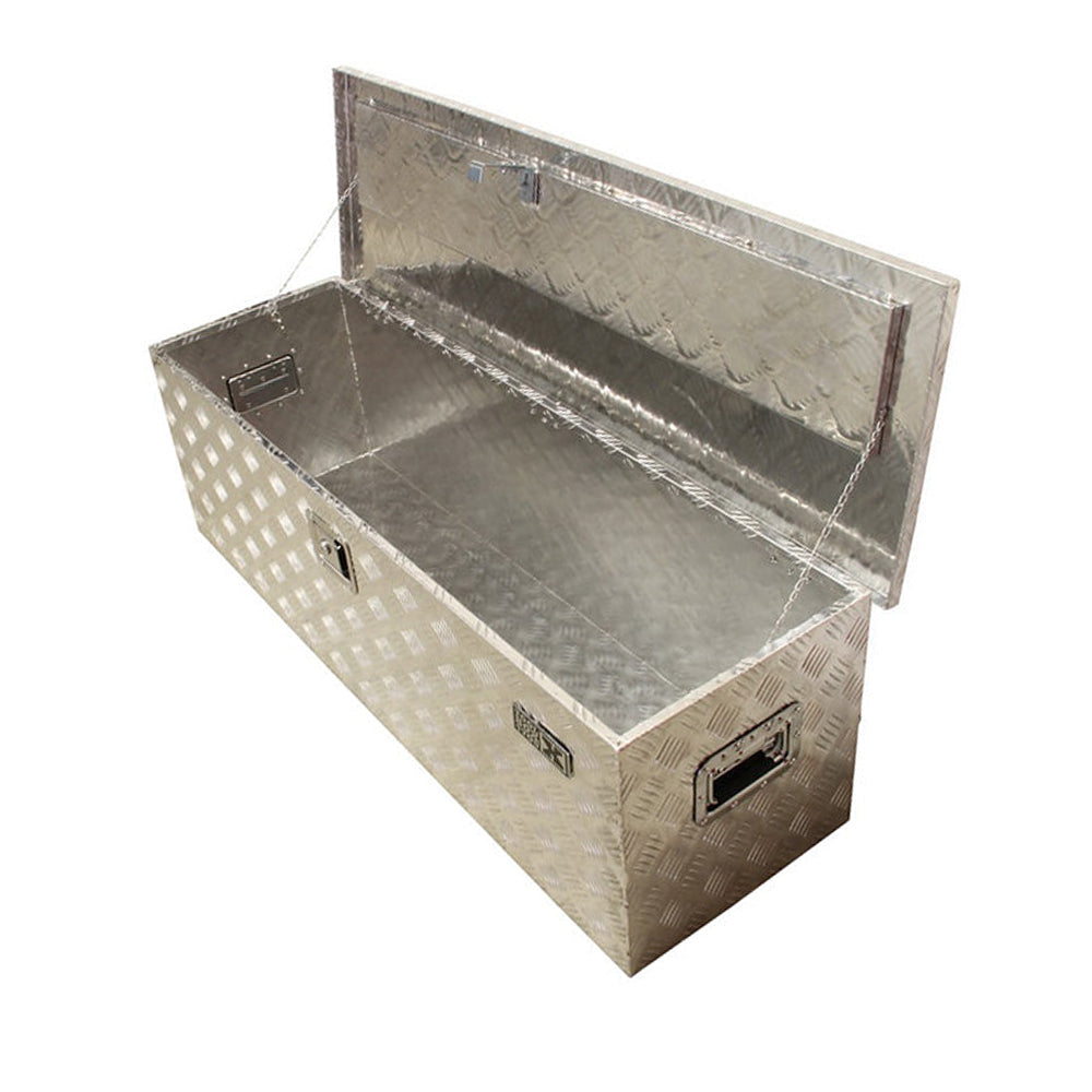TRUSA NAŘADIA Z VEĽKÉHO RÝHOVANÉHO HLINÍKA je určená na uchytenie pod podvozok kamiónu alebo prívesu. Umožňuje uskladnenie rôznych predmetov, náradia a iných pomôcok. Trusa je vybavená diskrétnym zámkom.