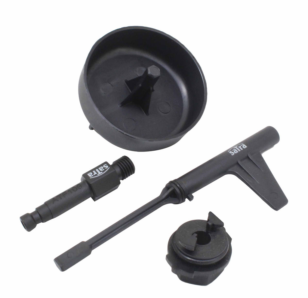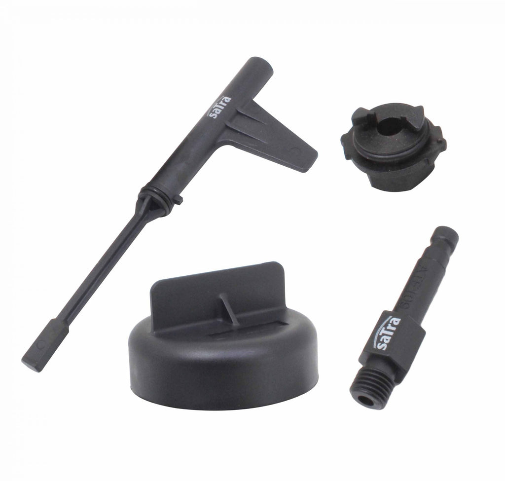 TÁTO SADA NA VÝMENU PREVODOVÉHO OLEJA PRE MERCEDES 9G-TRONIC je ideálna na plnenie a vypúšťanie oleja z prevodoviek Mercedes-Benz 725.0 (2014–2017) 9G-Tronic 72, ako aj pre vozidlá E350 Bluetec 2013 a CLS 2014. Vnútorný závit konektora M12×1.5 je možné použiť s dávkovačom oleja. Súčasťou je aj adaptér M12×1.5 pre prevodovku Benz 722.9.