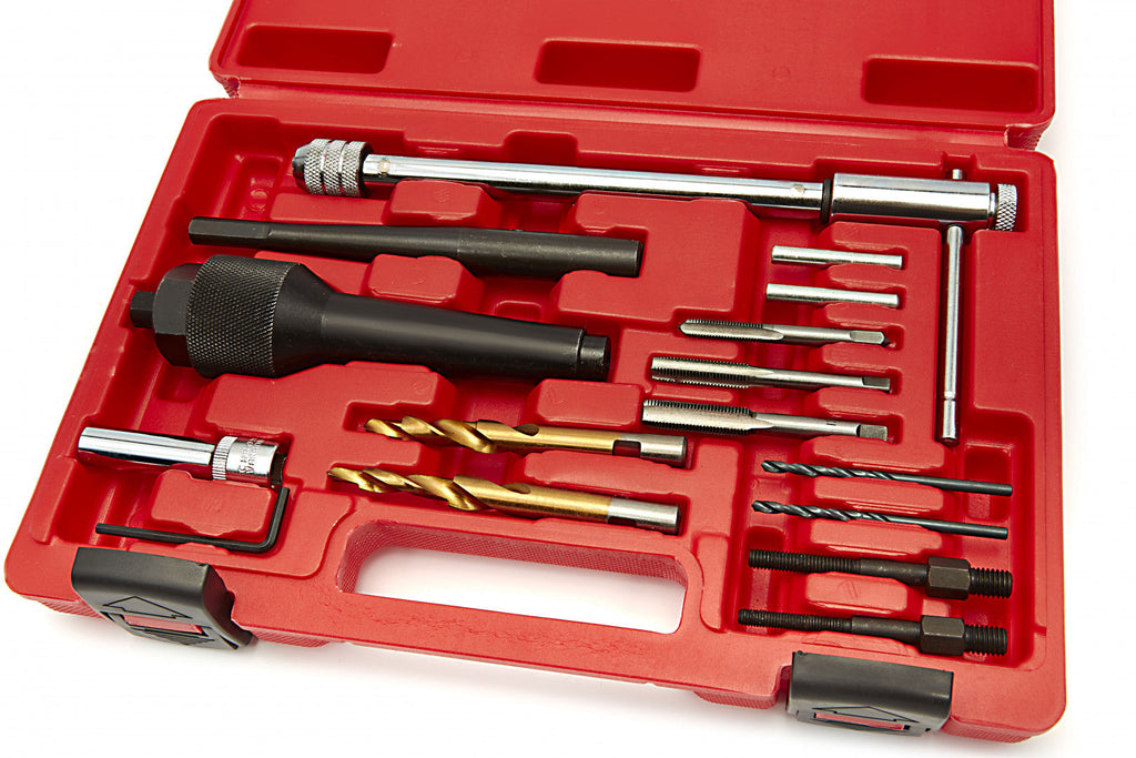 Obsahuje všetky potrebné nástroje na vybratie žeraviacich sviečok bez poškodenia závitu.