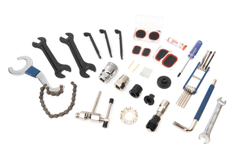 Obsahuje vidlicové kľúče, páky na plášte, nitovačku a rozpojovač reťaze, ako aj multifunkčný nástroj určený na rýchle zásahy. Súčasťou sú aj imbusové kľúče rôznych veľkostí, štandardné aj v tvare L s pogumovanou rukoväťou pre istejší úchop. Na zložitejšie operácie sada ponúka sťahovák kazety, sťahovák kľukového stredového zloženia, kľúč na stred a kľúč na špice. Okrem toho sú k dispozícii štyri adaptéry a hlavice špeciálne určené na prácu s kazetou a kľukovým stredom, ako aj opravná súprava Pyre užitočná v prípade defektu alebo drobných poškodení.