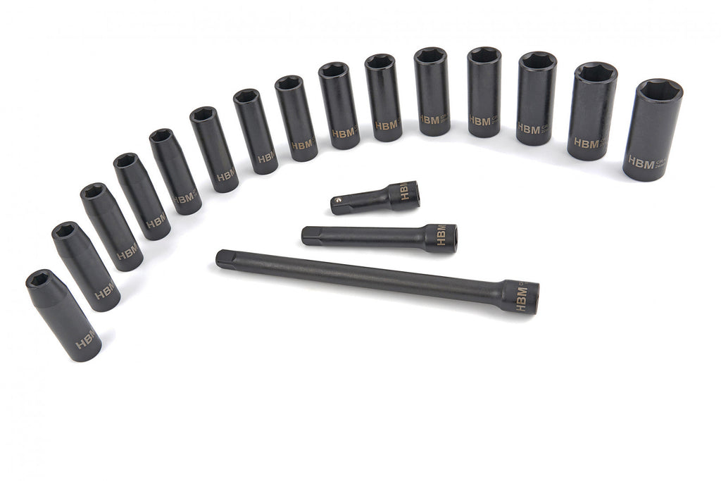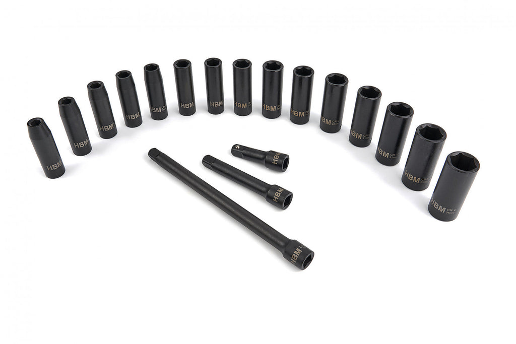 SADA ÚDEROVÝCH NÁSTRČNÝCH KĽÚČOV 1/2 18 KUSOV HBM obsahuje nástrčné kľúče vyrobené z vysoko kvalitnej chróm-vanádovej ocele. Táto sada môže byť užitočná pre autoservisy alebo pre rôzne oblasti, ktoré vyžadujú profesionálne a kvalitné kľúče na dlhodobé použitie.
