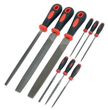 Pílky z tejto SADY PILNÍKOV Z OCELE 9 KS sú kovové a majú plastovú rukoväť.