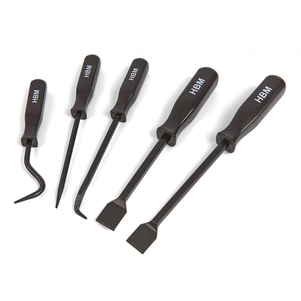 TÁTO SADA HÁKOV A ŠKRABIEK NA TESNENIA 5 KUSOV HBM je vyrobená z čierneniej ocele.