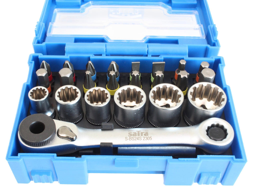 - Bity 1/4″: PH1, PH2, PZ1, PZ2, SL 4 mm, SL 6 mm, HEX3, HEX4, HEX5, HEX6, T10, T15, T20, T25, T30