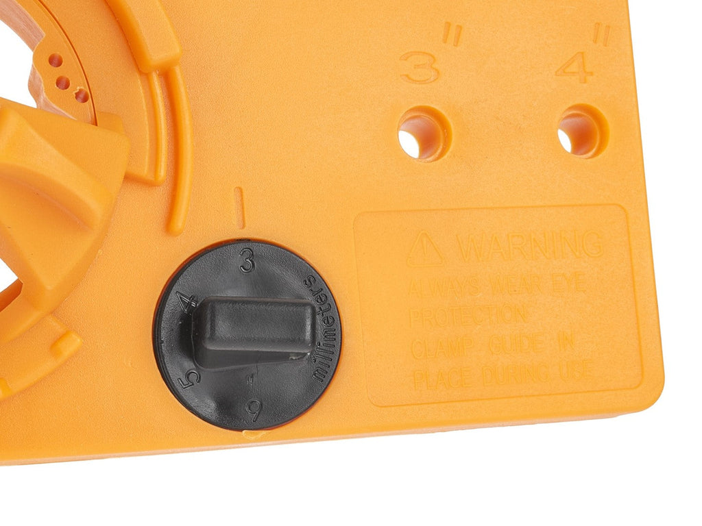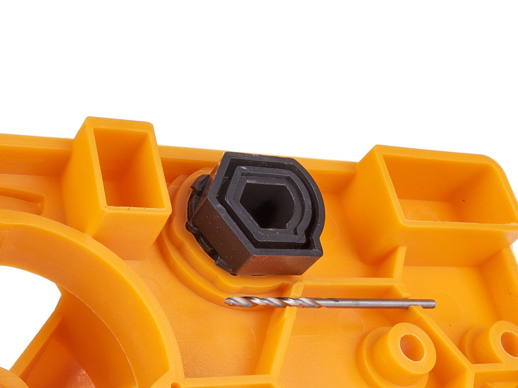 Hĺbkový doraz zabezpečuje vŕtanie otvorov do správnej hĺbky. Na nastavenie a montáž pántov sa v sade nachádza aj imbusový kľúč s priemerom 4 mm. Zaisťovací kolík pomáha stabilizovať šablónu počas vŕtania. Šablóna má dve tlačidlá, ktoré umožňujú nastavenie vzdialenosti otvoru od okraja dverí s možnosťou posunutia pántov od okraja o 3 mm, 4 mm, 5 mm a 6 mm.