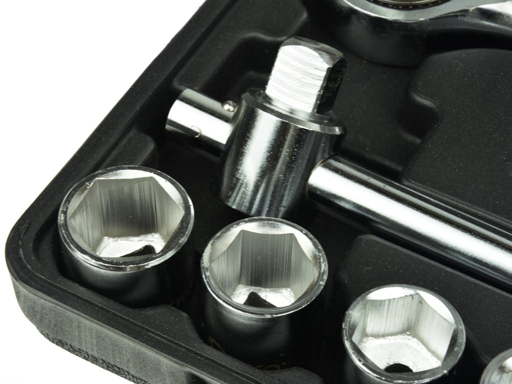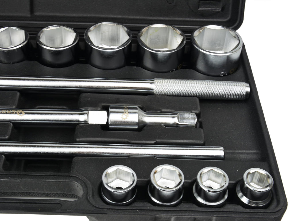 SADA ŠESTIHRANNÝCH HLAVIC S RÁČNOU 3/4" 19-50MM GEKO je vhodná pro automobilový průmysl, stavbu i dílny pro opravy.